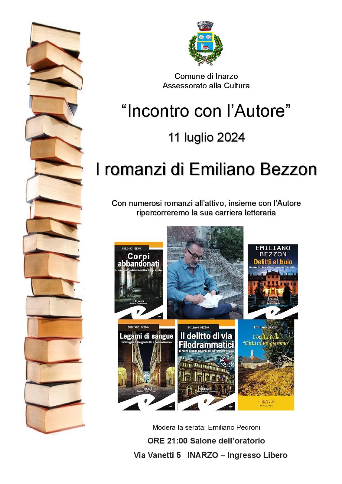 "INCONTRO CON L'AUTORE" GIOVEDI' 11 LUGLIO 2024 I ROMANZI DI EMILIANO BEZZON - MODERA LA SERATA: EMILIANO PEDRONI