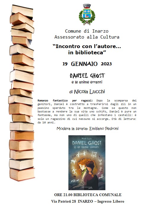 "INCONTRI CON L'AUTORE...IN BIBLIOTECA" GIOVEDI' 19 GENNAIO 2023 DANIEL GHOST E LE ANIME ERRANTI DI NICOLA LUCCHI - MODERA LA SERATA: EMILIANO PEDRONI