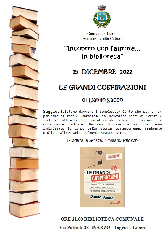 "INCONTRI CON L'AUTORE...IN BIBLIOTECA" GIOVEDI' 15 DICEMBRE 2022 LE GRANDI COSPIRAZIONI DI DANILO SACCO - MODERA LA SERATA: EMILIANO PEDRONI