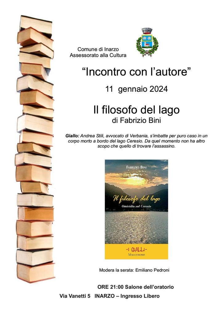 "INCONTRO CON L'AUTORE" GIOVEDI' 11 GENNAIO 2024 IL FILOSOFO DEL LAGO DI FABRIZIO BINI - MODERA LA SERATA: EMILIANO PEDRONI