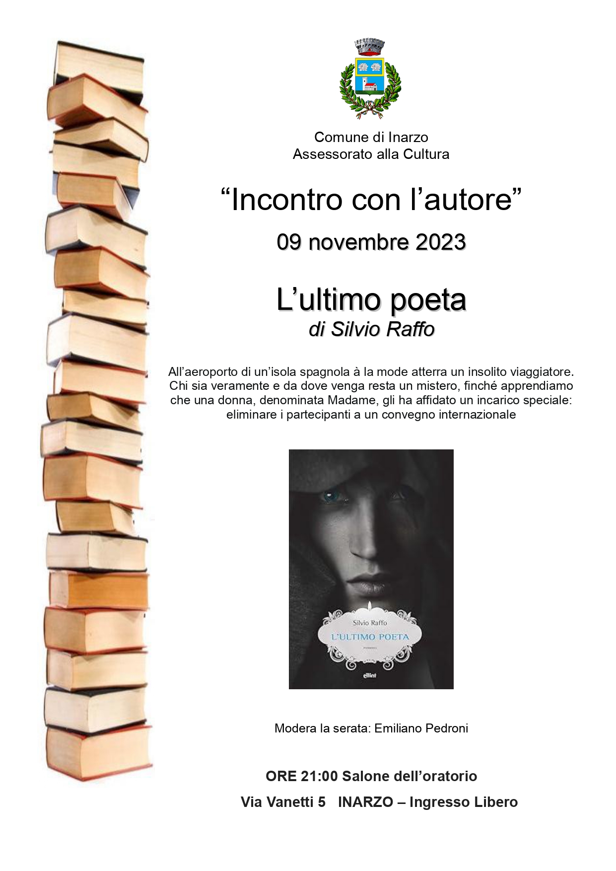 "INCONTRO CON L'AUTORE" GIOVEDI' 9 NOVEMBRE 2023 L'ULTIMO POETA DI SILVIO RAFFO - MODERA LA SERATA: EMILIANO PEDRONI