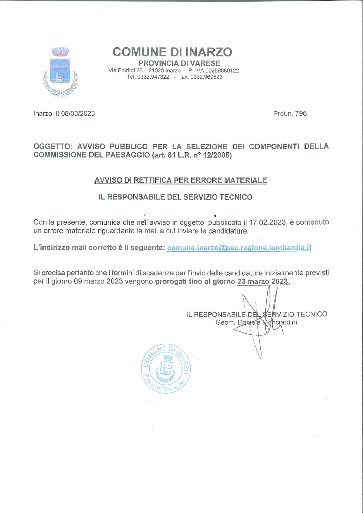Pubblicato: 09 Marzo 2023 Condividi Facebook Twitter Google Plus Whatsapp Telegram Email AVVISO PUBBLICO PER LA SELEZIONE DEI COMPONENTI DELLA COMMISSIONE DEL PAESAGGIO (ART. 81 L.R. N. 12/2005)