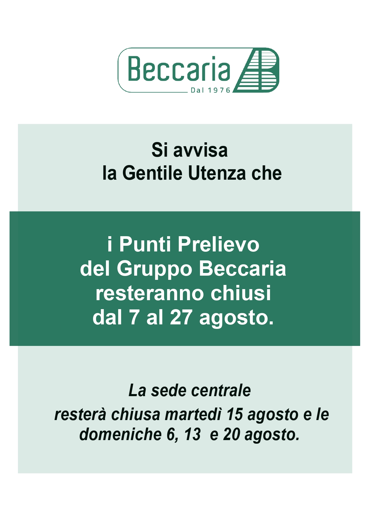 Pubblicato: 27 Luglio 2023 Condividi Facebook Twitter Google Plus Whatsapp Telegram Email CHIUSURA PUNTO PRELIEVI - AGOSTO 2023